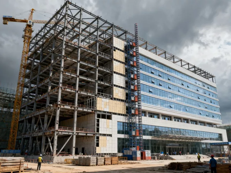 L'edifizii di l'ospedale di metalli prefabbricati di altu livellu si riferiscenu in generale à l'edificazioni di l'uspidale cù più di 10 piani. I so frames sò cumposti da travi d'acciaio è colonne d'acciaio, chì sò cunnessi da bulloni o saldatura. U materiale principale di l'edifizii di l'uspidale metallicu d'altitudine hè l'azzaru. L'edifizii di a struttura d'acciaio anu e caratteristiche di esse fermu è stabile, stallazione rapida, conservazione di l'energia è prutezzione di l'ambiente, etc. U quadru principale è altri cumpunenti di l'uspidale sò pruduciuti è processati in a fabbrica. Dopu a trasfurmazioni, ponu esse trasportati à u situ di custruzzione per a stallazione. E diverse parti sò cunnessi cù bulloni, è certi nodi devenu esse saldati in situ. Stu edifiziu di l'ospitale hè tipicamente appiicatu in grandi ospedali generali, edifici di inpatient, edifici di ricerca, etc.