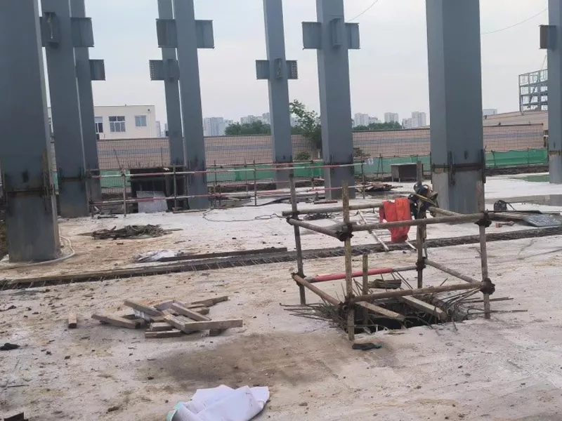 3.On-situ di stallazione: Mentre i cumpunenti sò prefabbricati in a fabbrica, a squadra di custruzzione hà da pre-intarrà i bulloni d'ancora in u situ di custruzzione per compie u pre-sepultura di fundazione. Infine, l'assemblea di l'edifiziu di l'uspidale metallicu prefabbricatu altu hè realizatu.