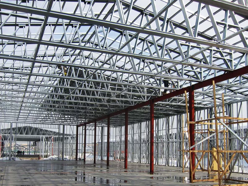 Una volta u quadru di azzaru hè cumpletu, u sistema di tettu hè stallatu, tipicamenti custituitu da i pannelli di metalli inutulati o materiali di a membrana sola. Iri esterni, se hè includu in u disignu, sò ancu installati aduprendu i pannelli di u metallu, Brick, o altre materiali di classamentu. Questi elementi furnisce resistenza à u clima è cuntribuiscenu à l'appellu esteticu di l'edificiu.