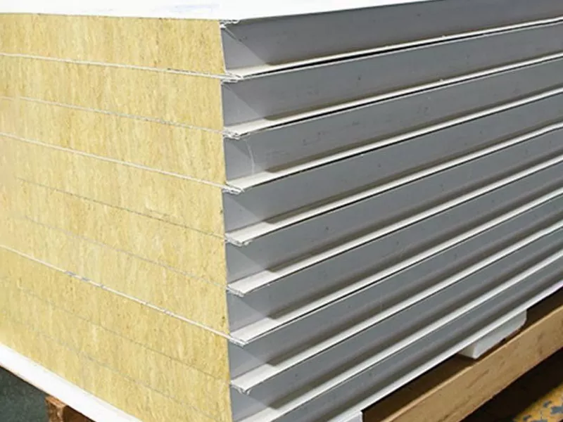 U core di u pannellu sandwich hè cumpostu di Rockwool, un materiale d'insulazione di fibra minerale cunnisciutu per e so eccellenti proprietà d'insulazione termica è acustica. Circundendu stu core sò dui strati di fogli di metallu, tipicamente azzaru o aluminiu, chì furnisce rigidità strutturale è prutegge l'insulazione da elementi esterni.
