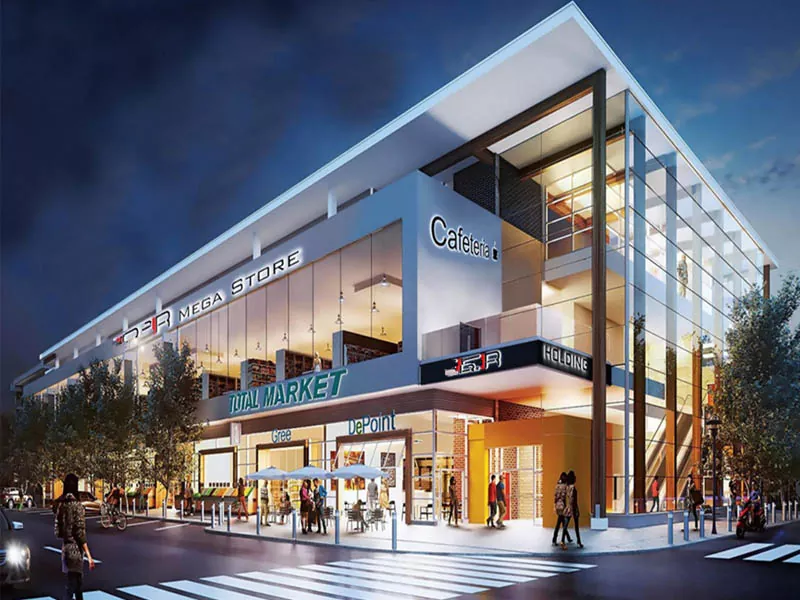 Un centru cummerciale di u giapponese Giapponese: Struttura d'azzaru cun un cuncepimentu di l'acciaio di dui Storii, l'apparenza esterna di l'edifiziu cum'è l'aspettu piacevule, facendu una caratteristica distinti di u centru distintivu. A so tribunale di l'alimentariu si trova à u sicondu pianu, offre una vista duale di u centru cummerciale è a muntagna distante.